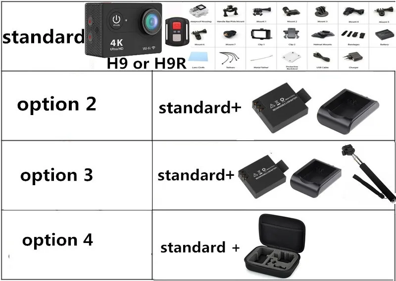 Aksiyon kamerasının yanında sahip olmak isteyeceğiniz neredeyse tüm aksesuarlar mevcut. Kamerayı sipariş verirken yanında extra batarya ve vakumlu tutucu almanızı öneririm.
